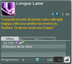 Longue Lame Sort à fort coup, permet éventuellement de s'avancer / reculer d'une case suivant dans quel sens on le lance, ou bien de causer des dommages à plusieurs cibles alignées.