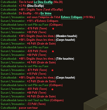 Pile ou Face : principalement utilisé sous Dieu Ecaflip, où il devient dévastateur. Il est malheureusement un peu trop aléatoire pour être réellement utilisable sans ce tarot.